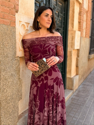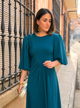 El vestido es precioso, al ser una tela de tul elástica es comodísimo, con un corte muy favorecedor y con el drapeado en la zona de la barriguita disimula mucho el volumen.