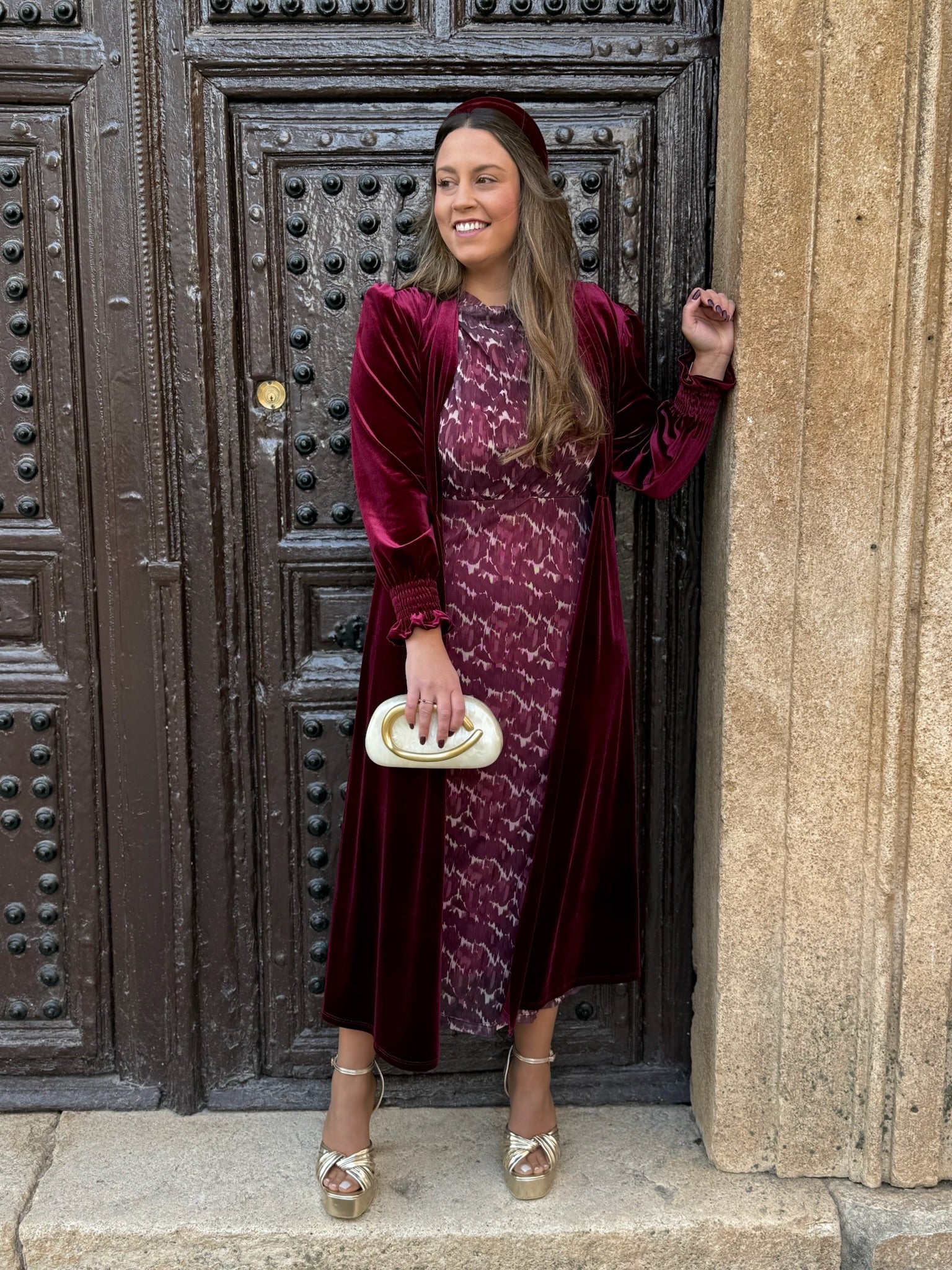 Nos fascina los look de invitada de invierno, y con nuestra abrigo de terciopelo , sabemos que vas a triunfar.