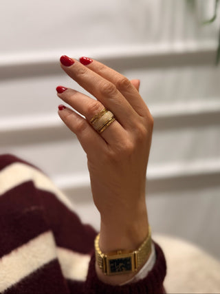 La bisutería de esta temporada celebra la expresión individual a través de diseños ligeros y sofisticados. Se imponen los pendientes XXL en formas geométricas, las gargantillas minimalistas, y los anillos de inspiración orgánica. También destacan las combinaciones de metales mezclados —dorado, plateado y rosado— en piezas versátiles que permiten jugar y reinventar los looks. El brillo sutil y los detalles artesanales marcan el pulso de una elegancia moderna y consciente.