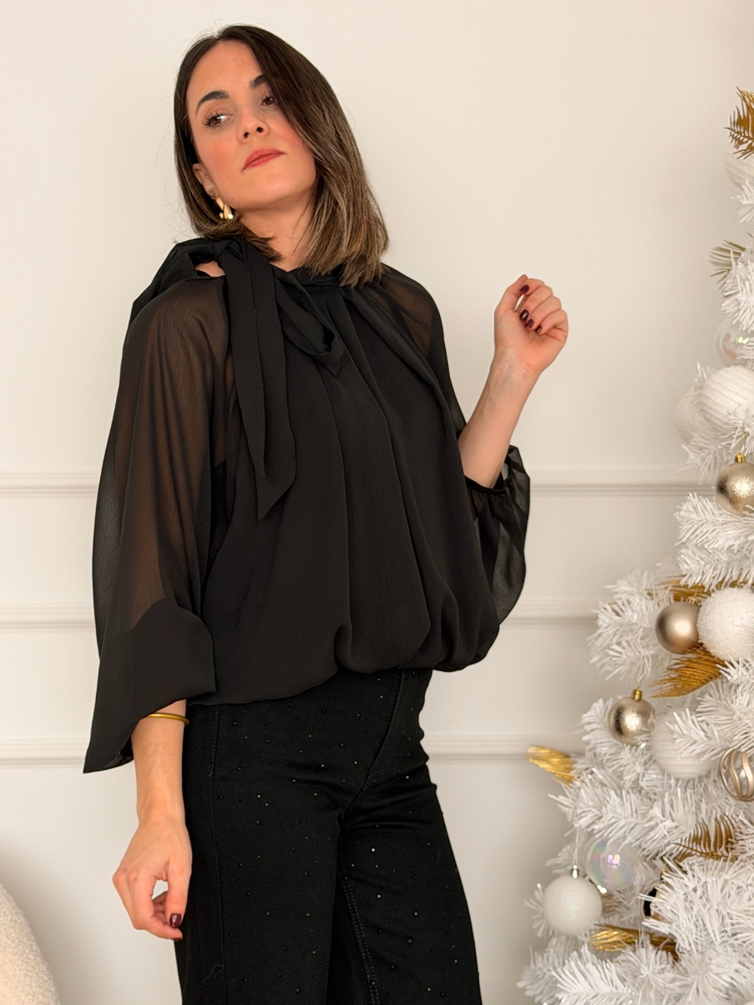 Dale un toque de sofisticación a tu armario con esta blusa de mangas de murciélago. Su diseño fluido y elegante con mangas amplias aporta un aire relajado pero chic, perfecto para cualquier ocasión. Con un corte que realza la figura y una caída delicada, esta blusa combina a la perfección con jeans, pantalones de tiro alto o faldas, creando looks cómodos y con mucha personalidad.