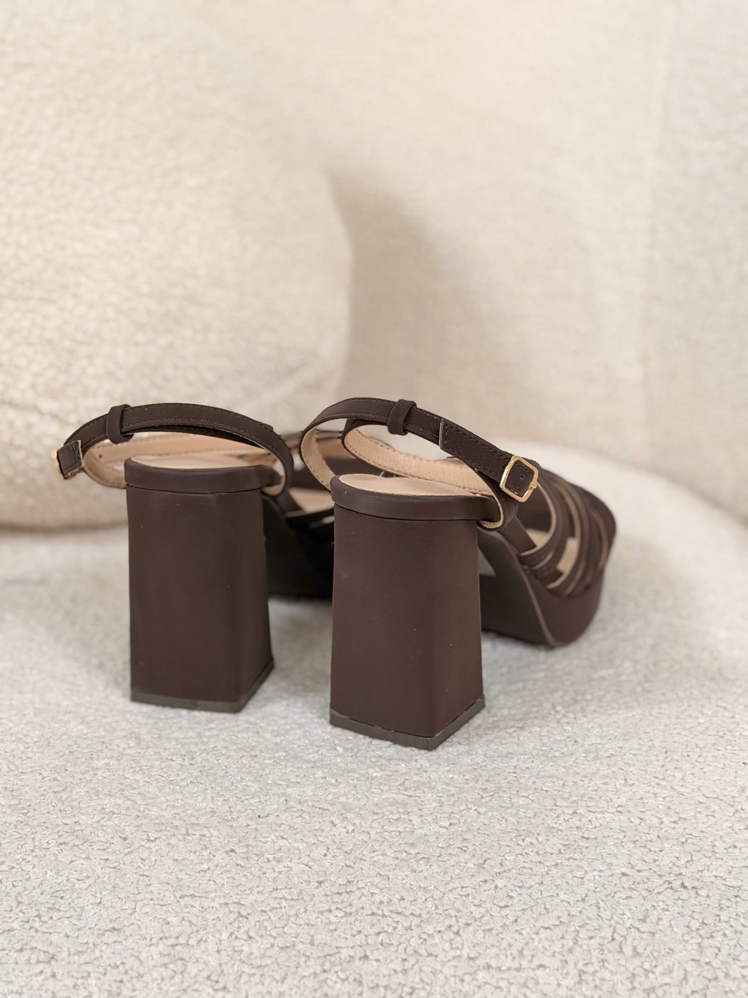 Sandalia de tacón ancho en color marrón