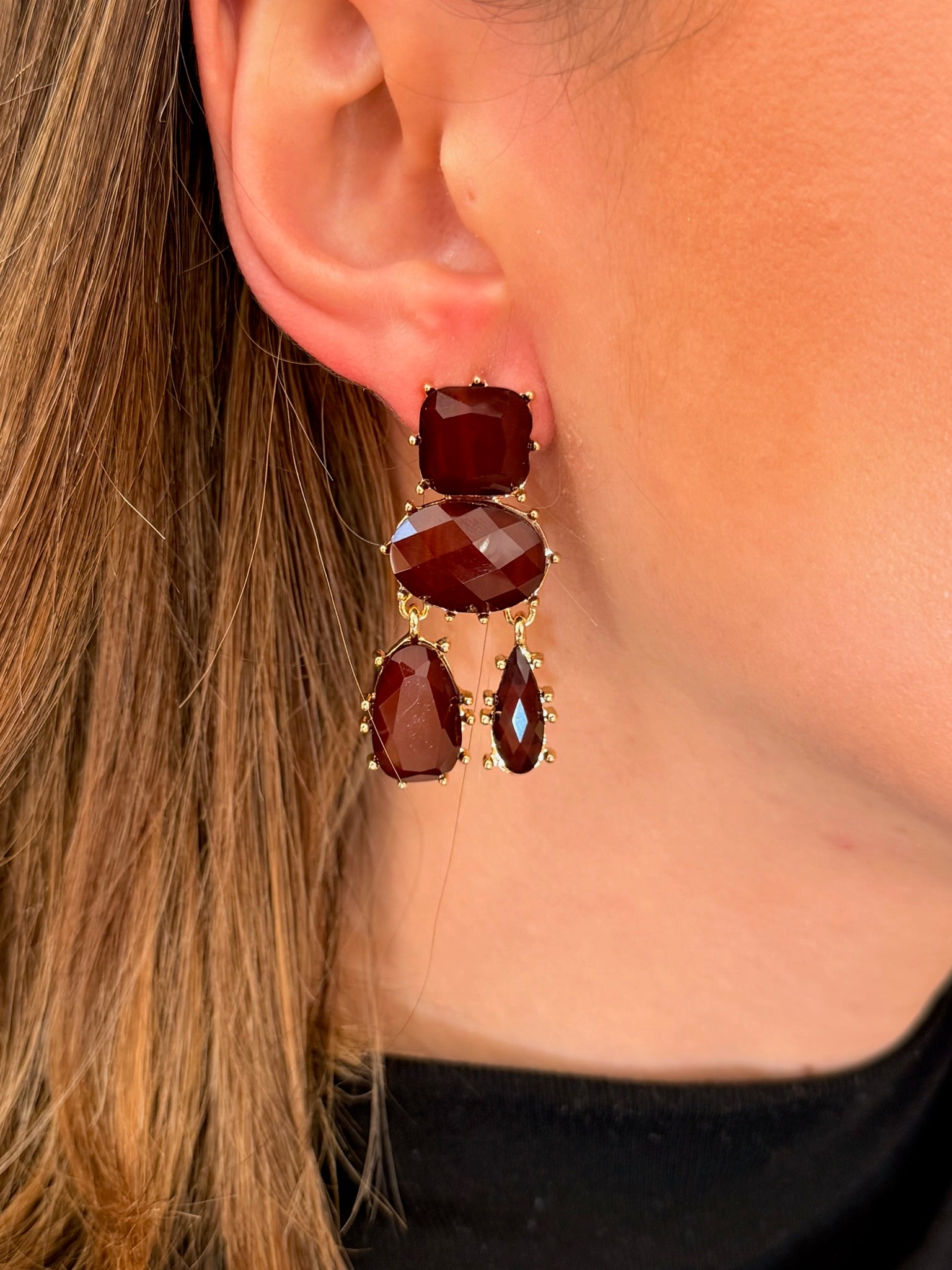 Los pendientes Valentina destacan por su diseño sofisticado compuesto por piedras facetadas en tono marron que aportan brillo y elegancia. Un accesorio perfecto para elevar cualquier look de invitada y añadir un toque especial a vestidos en tonos neutros o tierra. Ideales para bodas, eventos y celebraciones.