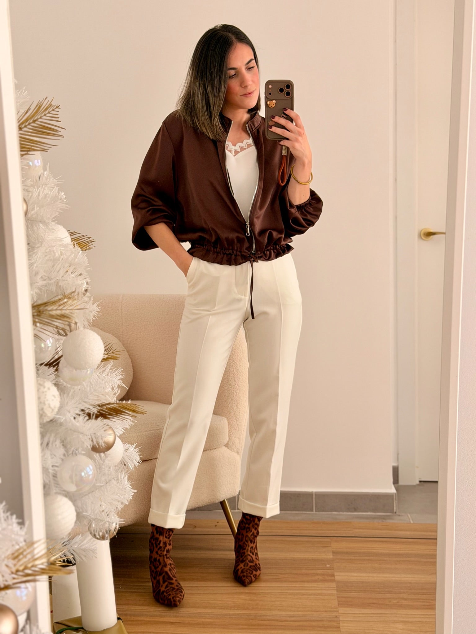 Chaqueta satinada  con cremallera 🍷✨