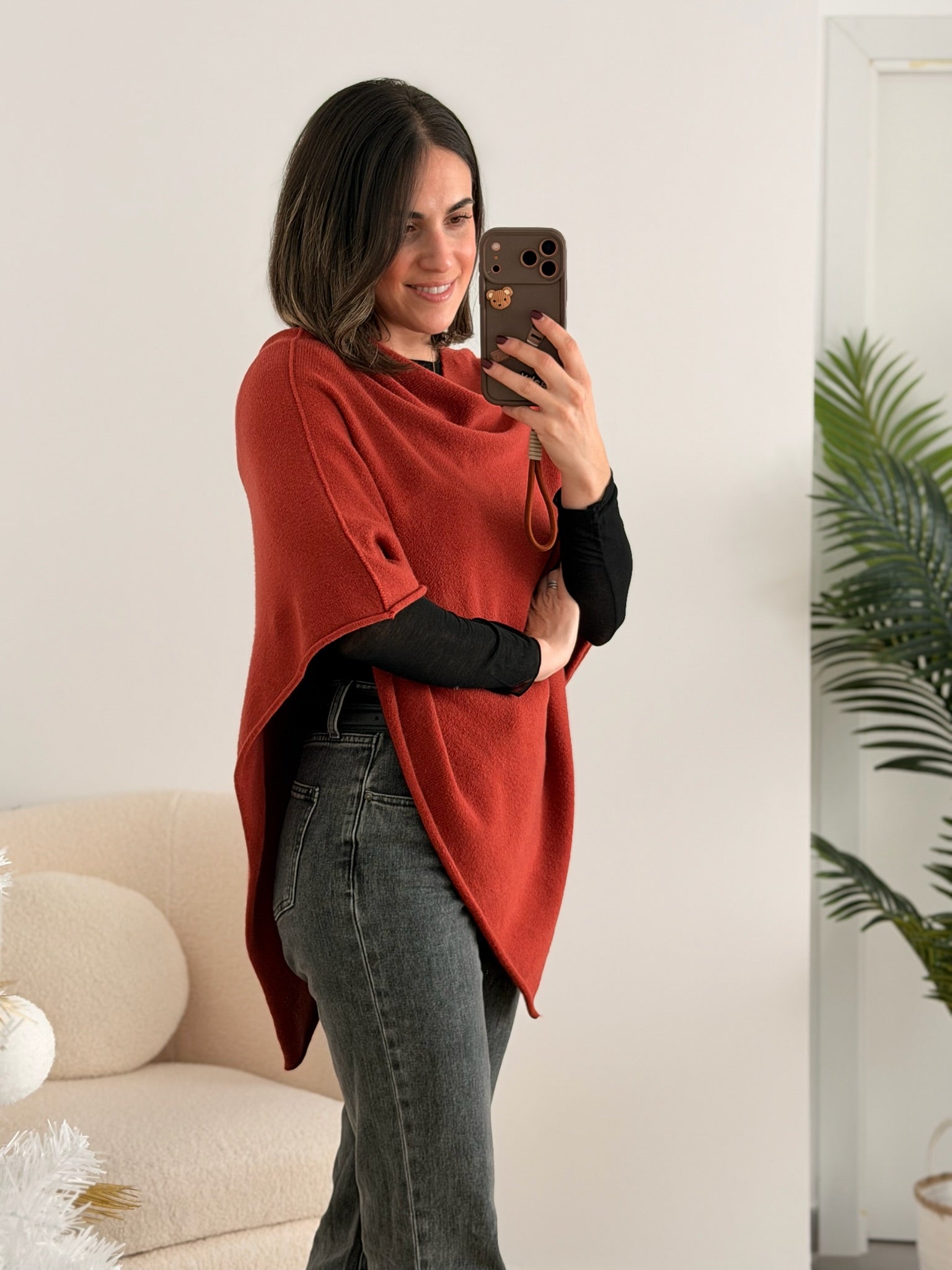 Nuestra capa de punto es ese básico elegante que nunca falla. Ligera, suave y muy gustosa, aporta calidez sin renunciar al estilo. Su caída favorecedora y su diseño envolvente la convierten en la prenda perfecta para el día a día, para llevar sobre camisas, básicos o incluso looks más arreglados.