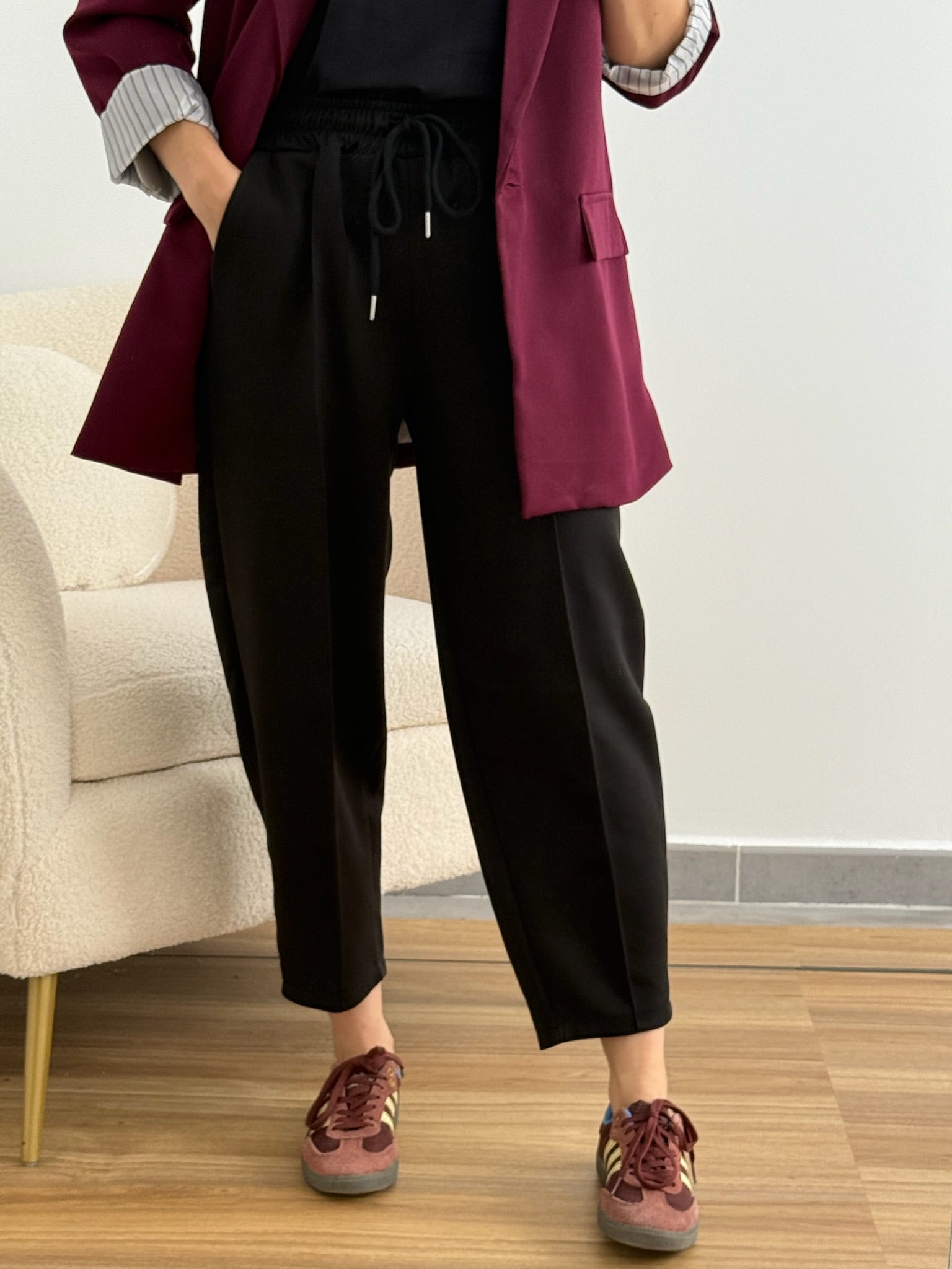 El pantalón Alma es el equilibrio perfecto entre comodidad y estilo. Confeccionado en un tejido suave y de tacto agradable, su diseño relajado y cintura elástica lo hacen ideal para looks de diario con un aire minimalista y pulido.