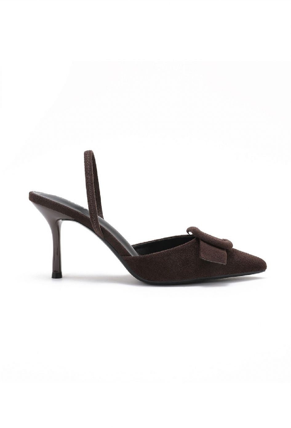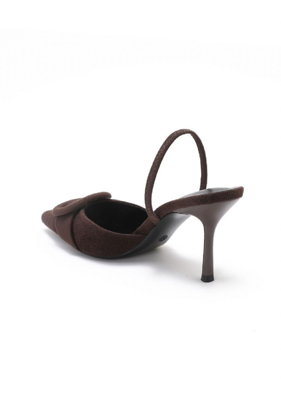 Zapato de tacón destalonado tipo salón en tejido. Detalle de lazo en la parte delantera. Acabado en punta. Tira trasera con pieza elástica.