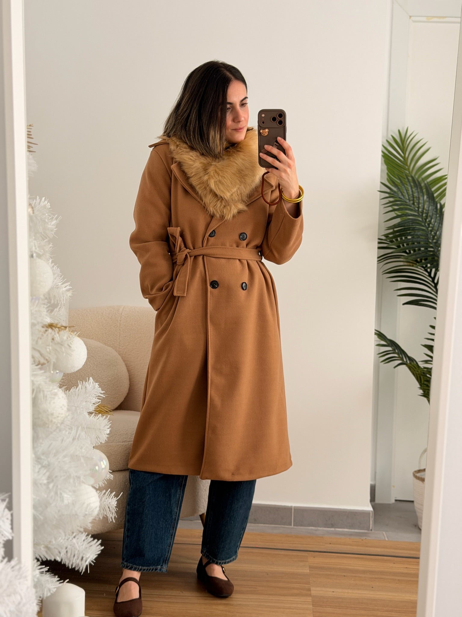 Su tono camel, elegante y fácil de combinar, lo convierte en un fondo de armario imprescindible, perfecto tanto para looks casuales con vaqueros como para conjuntos más arreglados. Incluye bolsillos laterales y un ajuste cómodo que permite llevarlo sobre jerséis o prendas más gruesas.