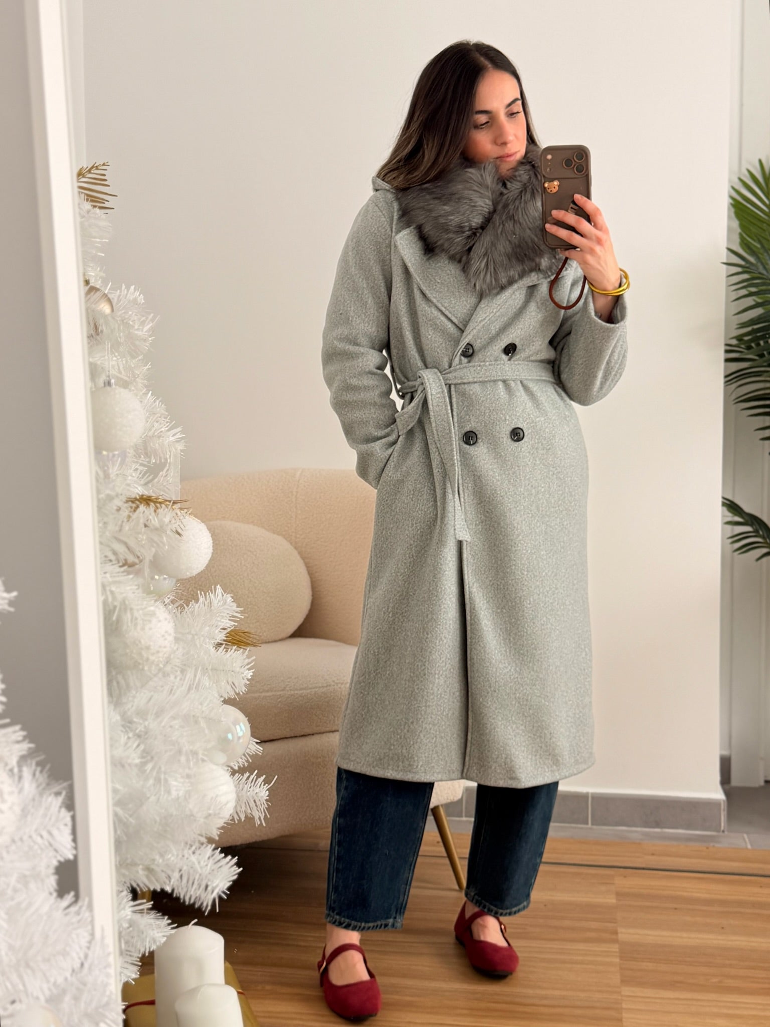 Abrigo largo clásico de corte recto, una prenda atemporal que eleva cualquier look del día a día. Confeccionado en tejido suave y agradable, destaca por su diseño cruzado con doble botonadura, solapas amplias y un largo ideal para estilizar la silueta.