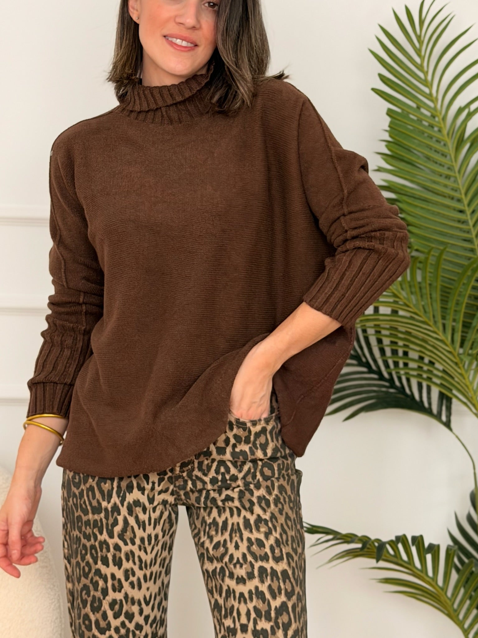 Jersey de punto suave en color crudo con cuello perkins y diseño de hombro caído. Su tejido agradable y el corte relajado lo convierten en una prenda imprescindible para los días fríos. Combina comodidad y estilo con un acabado ligeramente oversize que sienta bien a todos los tipos de cuerpo. Ideal para llevar con faldas satinadas o pantalones anchos para un look actual y sofisticado.