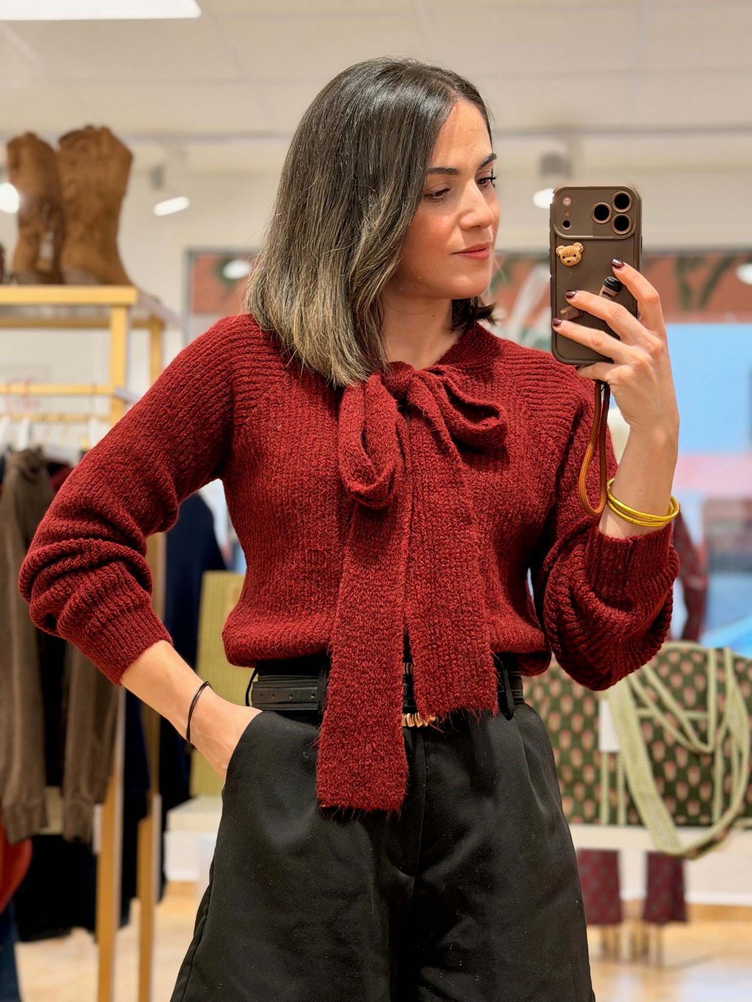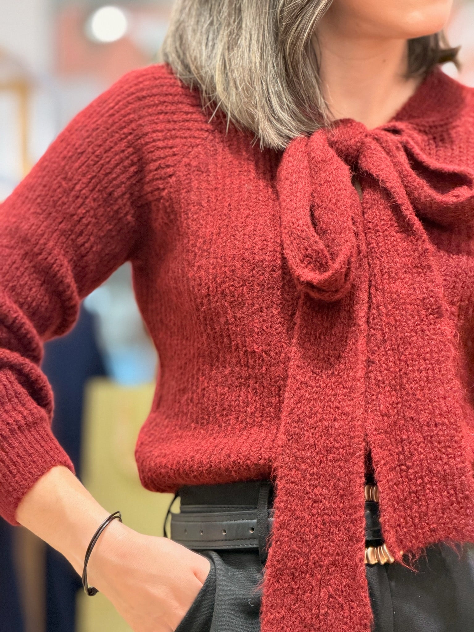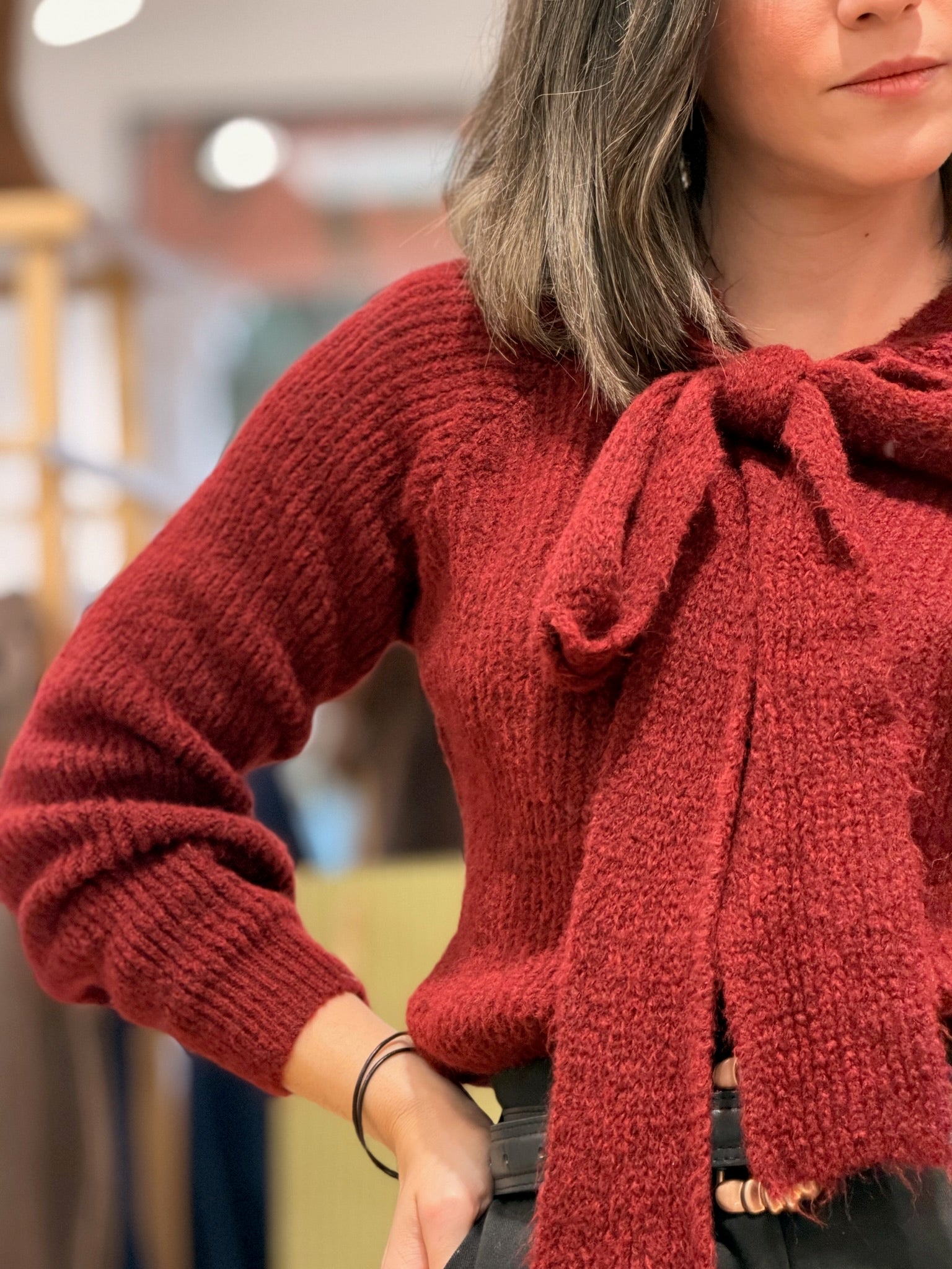 Jersey punto con lazo burdeos| Mika