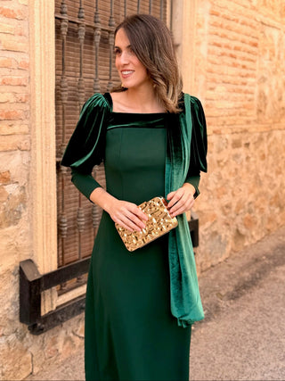 El vestido midi es la opción más equilibrada para una boda de otoño: cubre lo necesario, estiliza la figura y permite moverse con facilidad. Si el evento es más formal o de noche, el vestido largo en tejido satinado o con detalles fruncidos es una excelente alternativa. En bodas más informales, un vestido corto de fiesta con manga larga y escote cerrado también puede ser acertado.