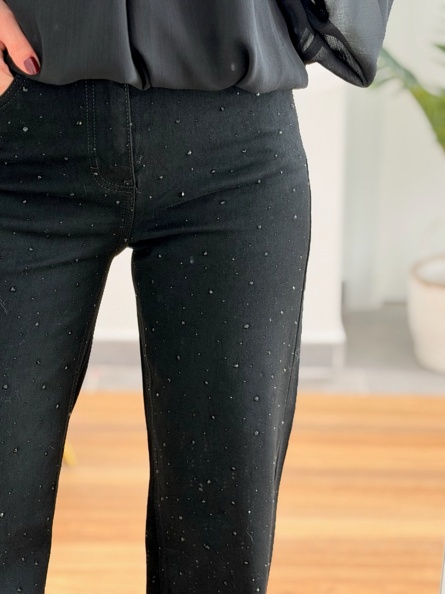 Descubre Jeans Sacha : los vaqueros anchos con pedrería que combinan elegancia y modernidad.
