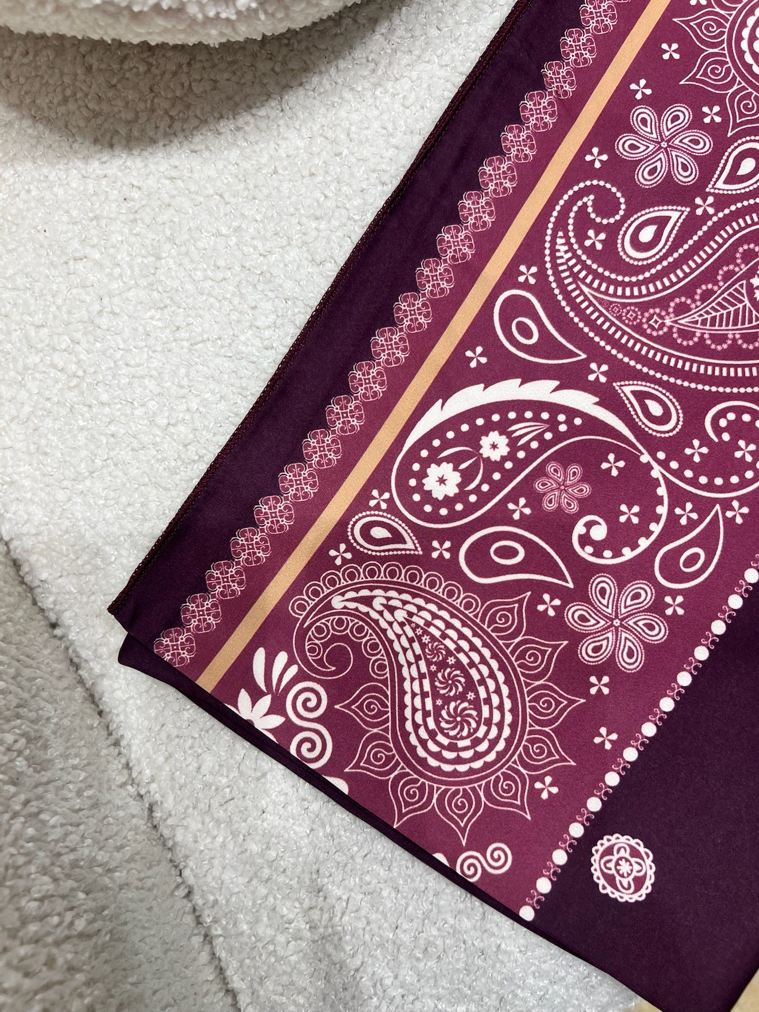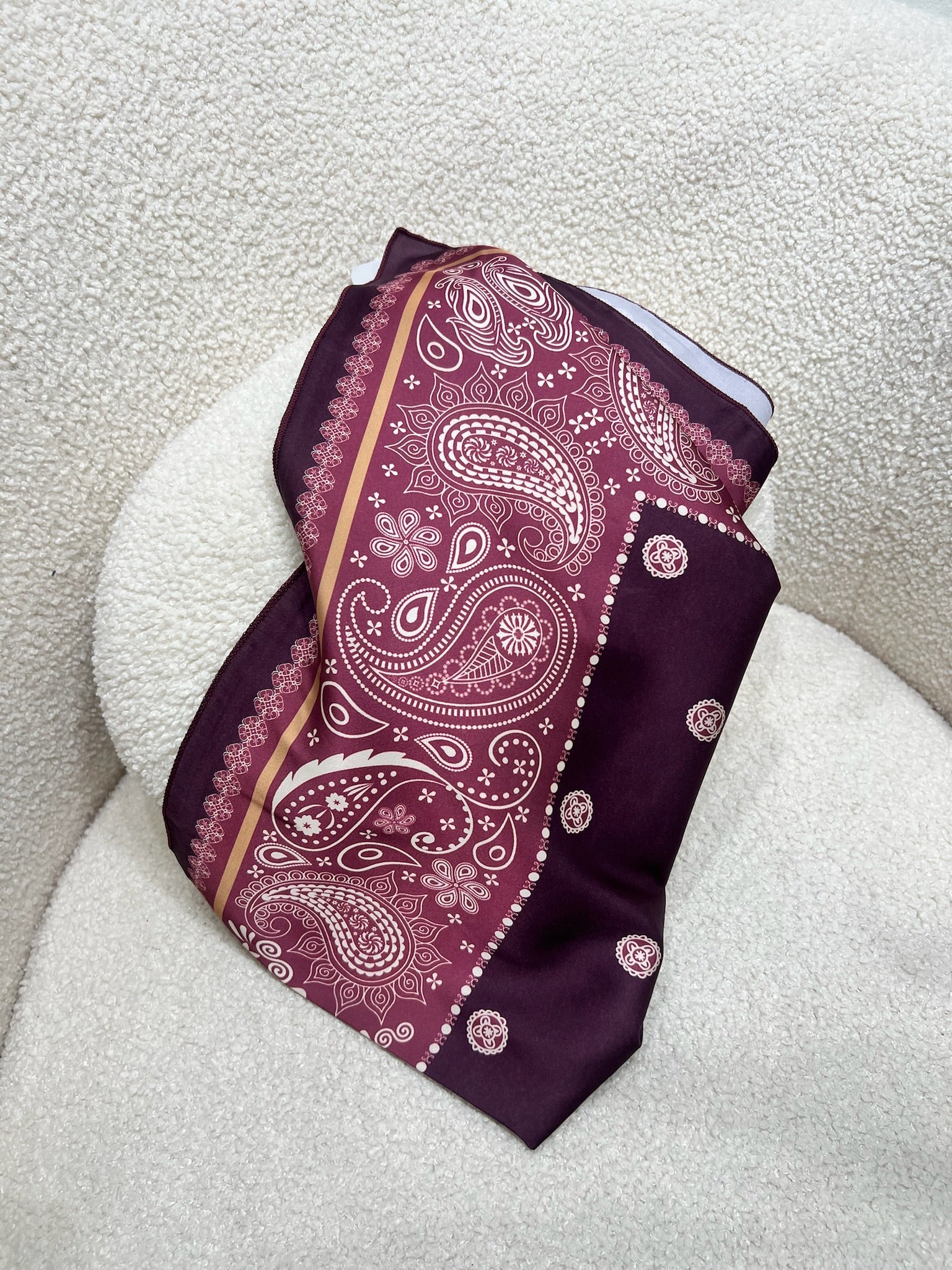 Pañuelo estampado tejido fluido, diseño cuadrado.