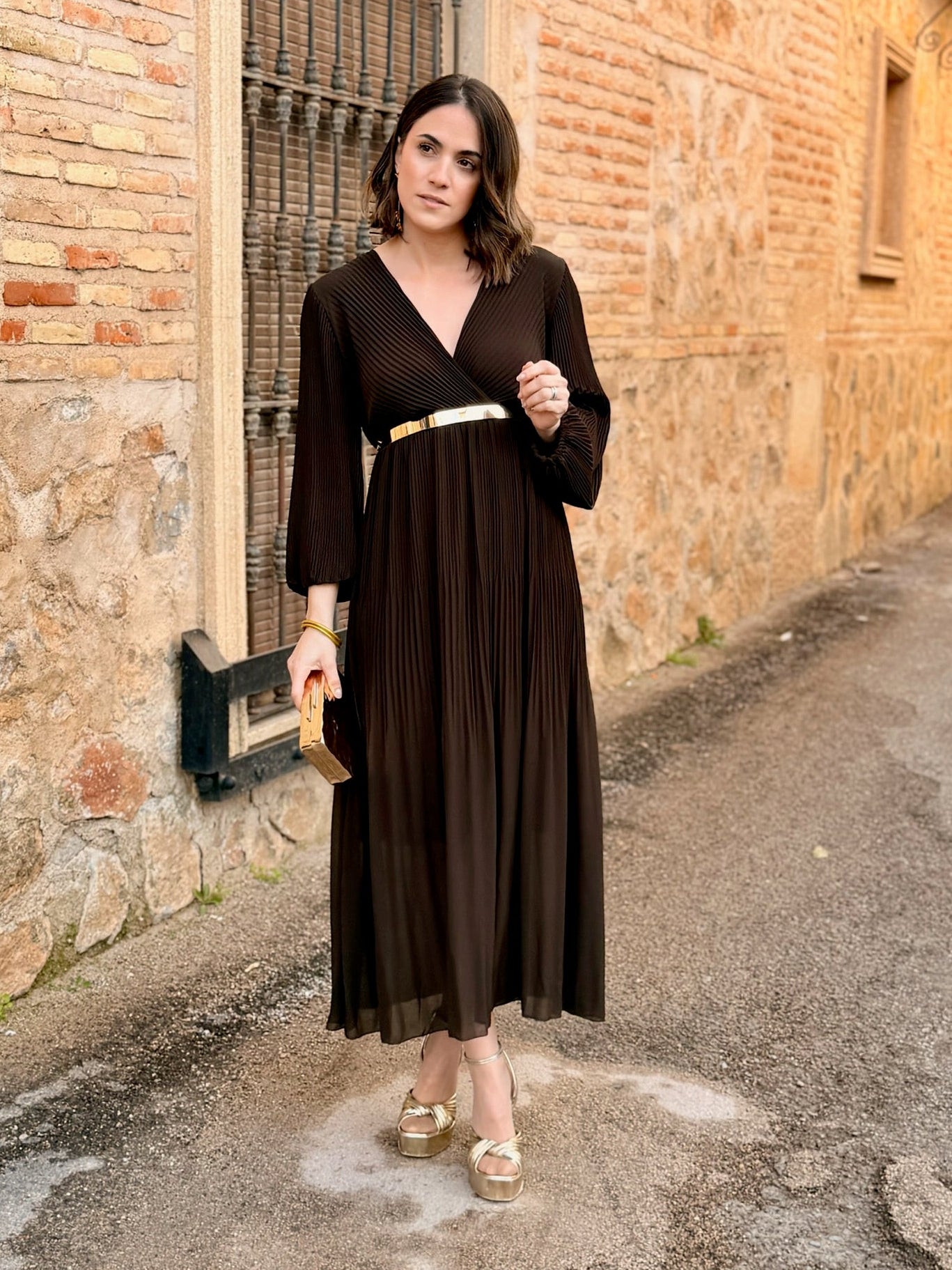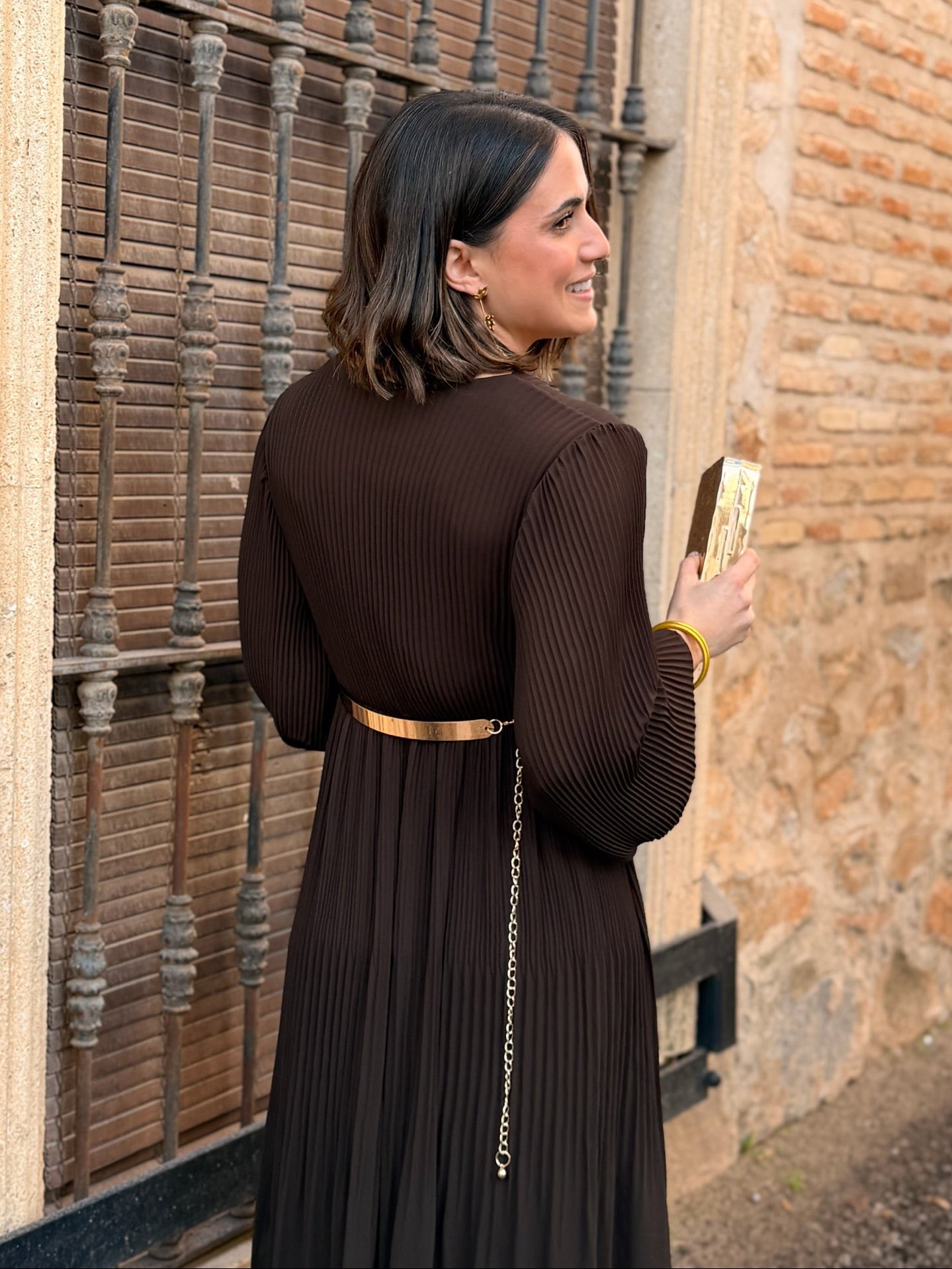 Vestido plisado marron | Catalina