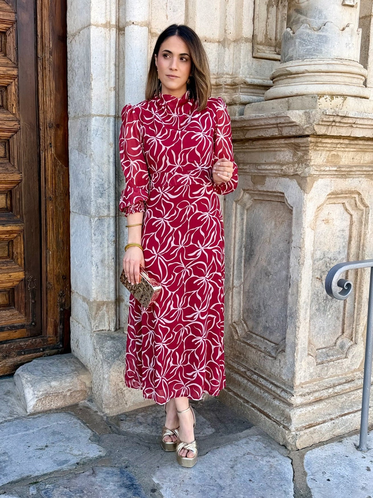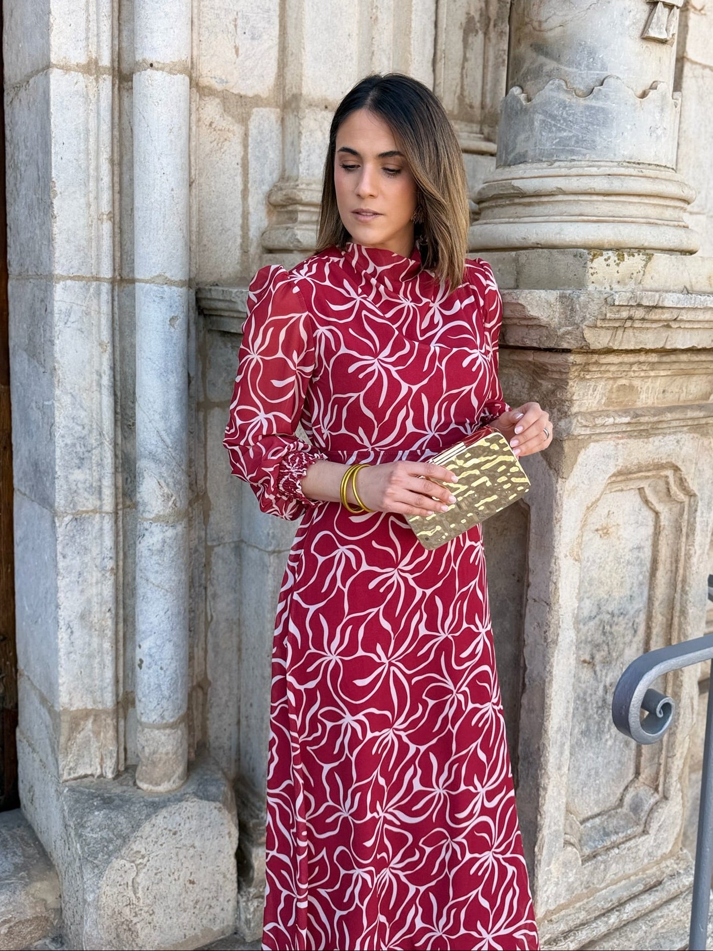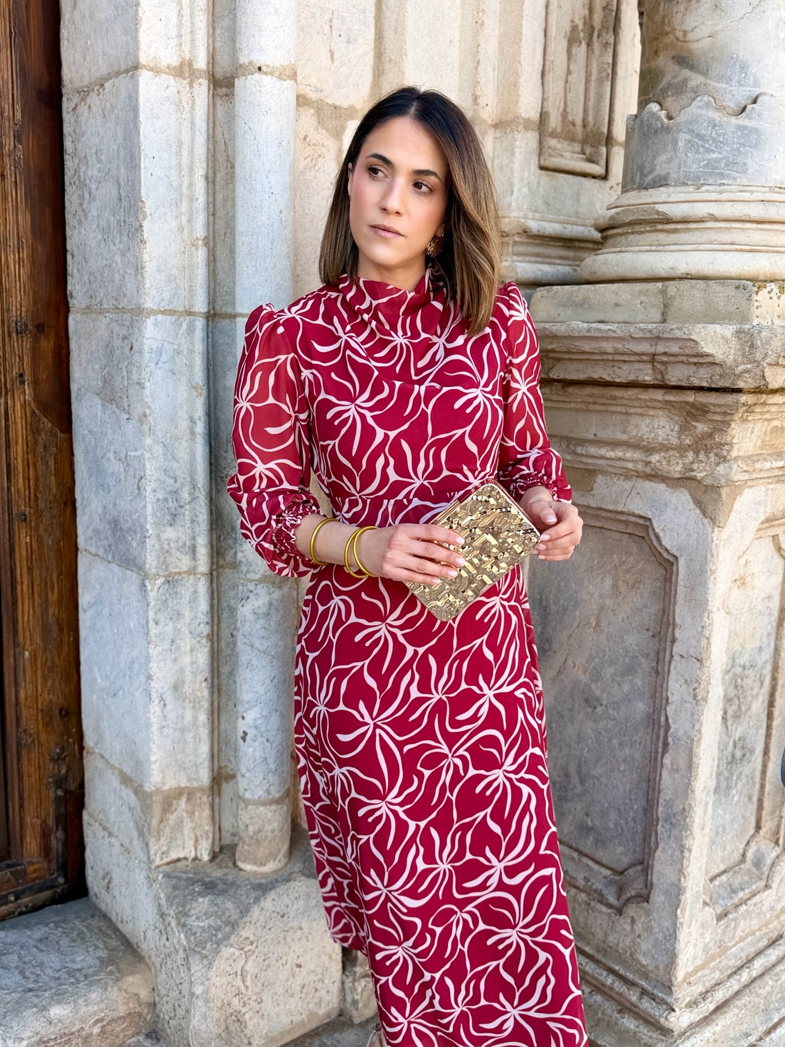 Um vestido que não passará despercebido. O seu padrão contrastante cria um efeito visual sofisticado e elegante, perfeito para eventos, jantares especiais ou para convidadas que desejam algo diferente.