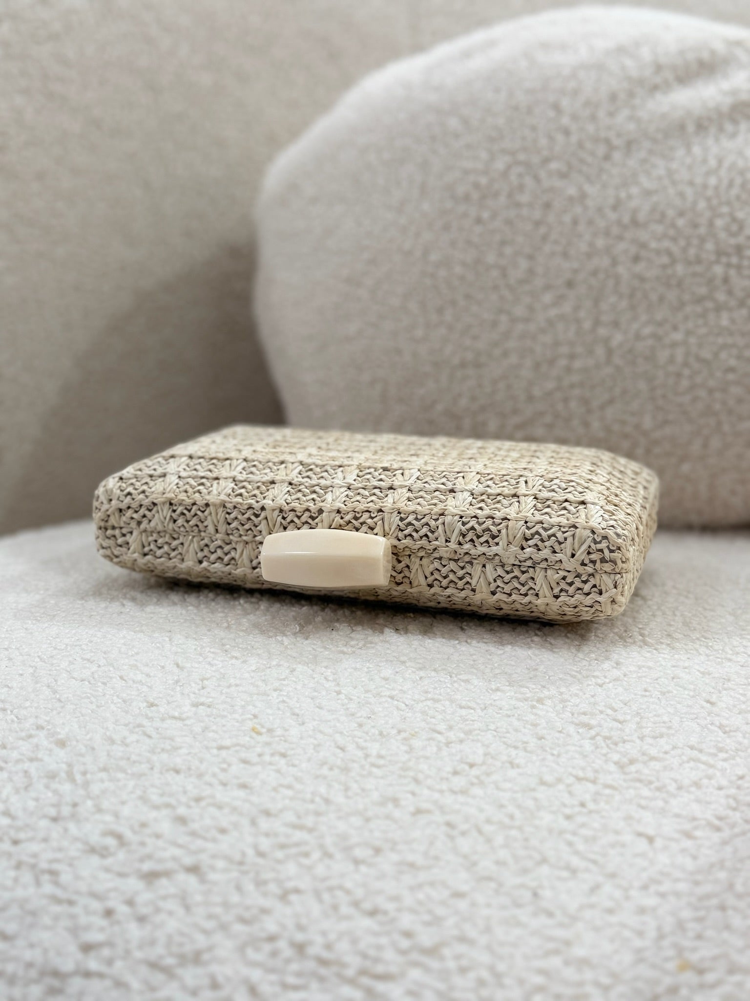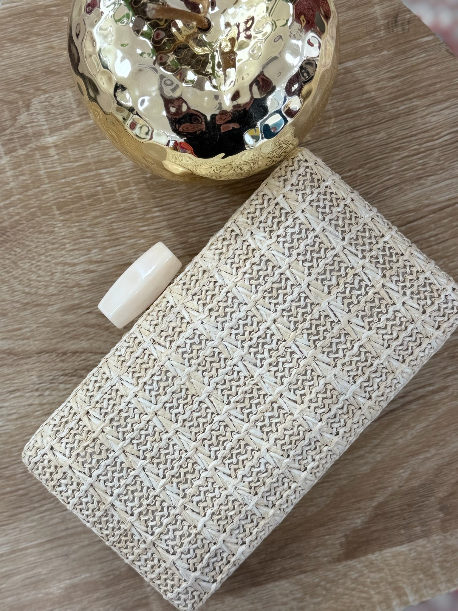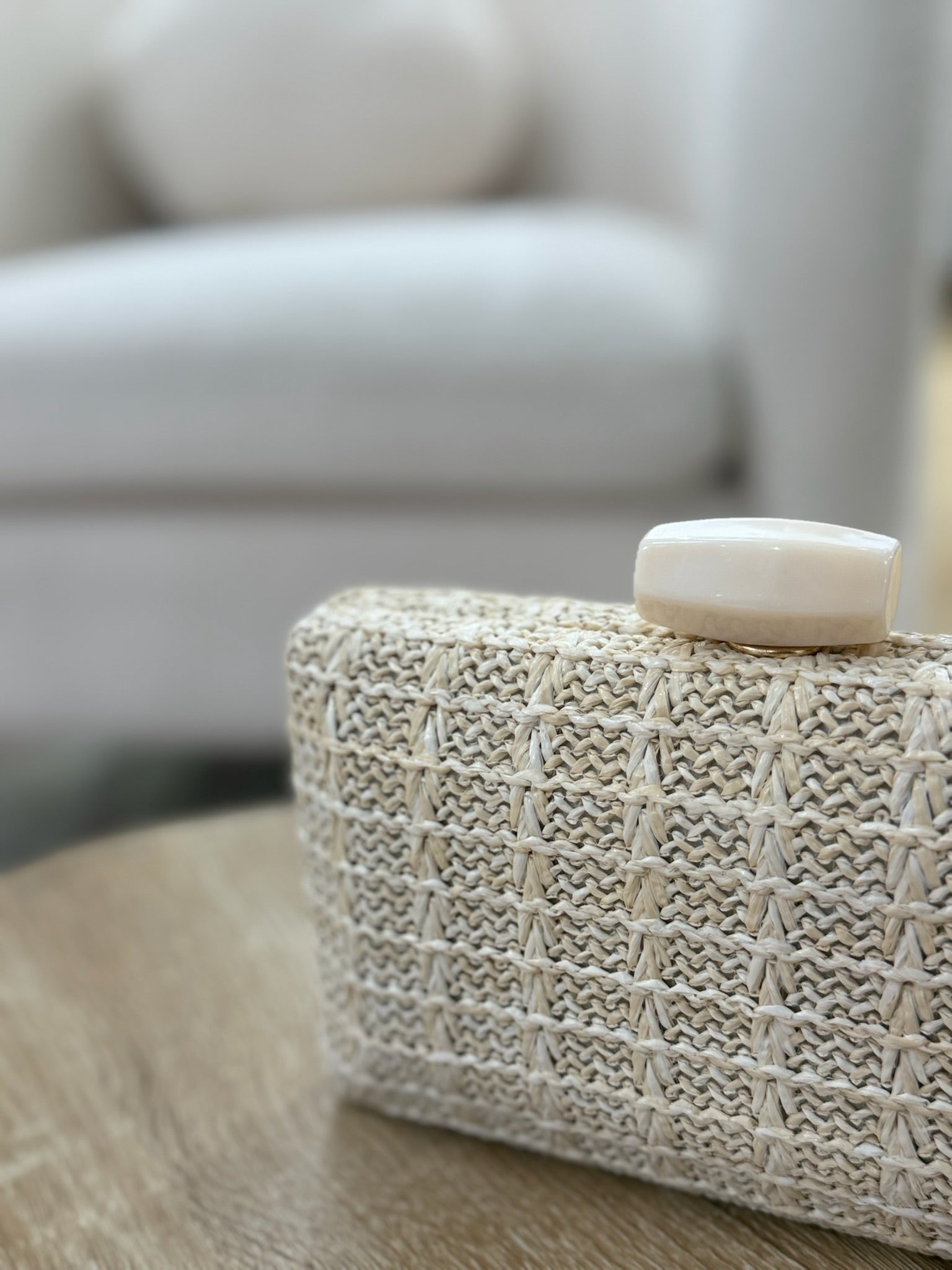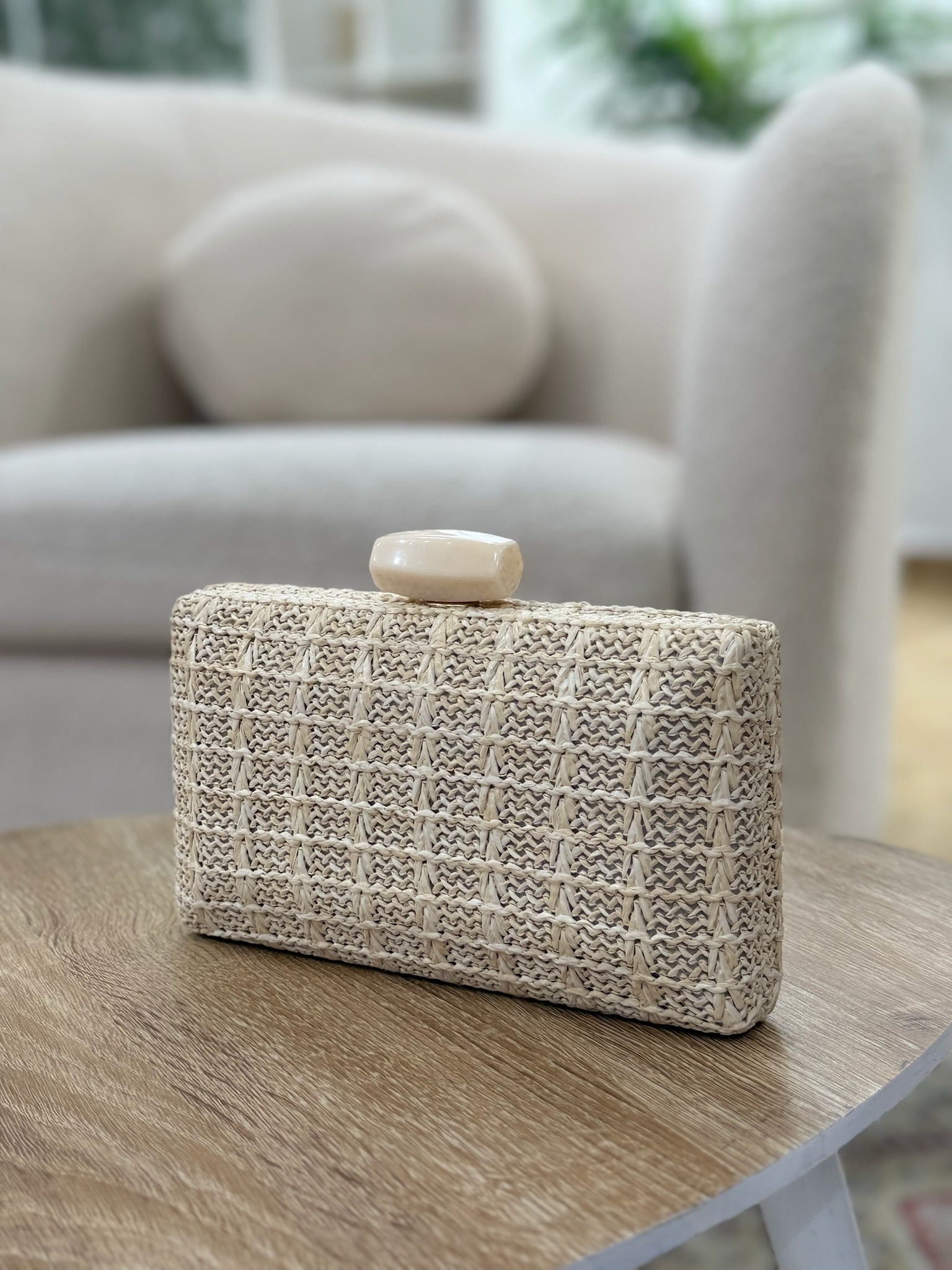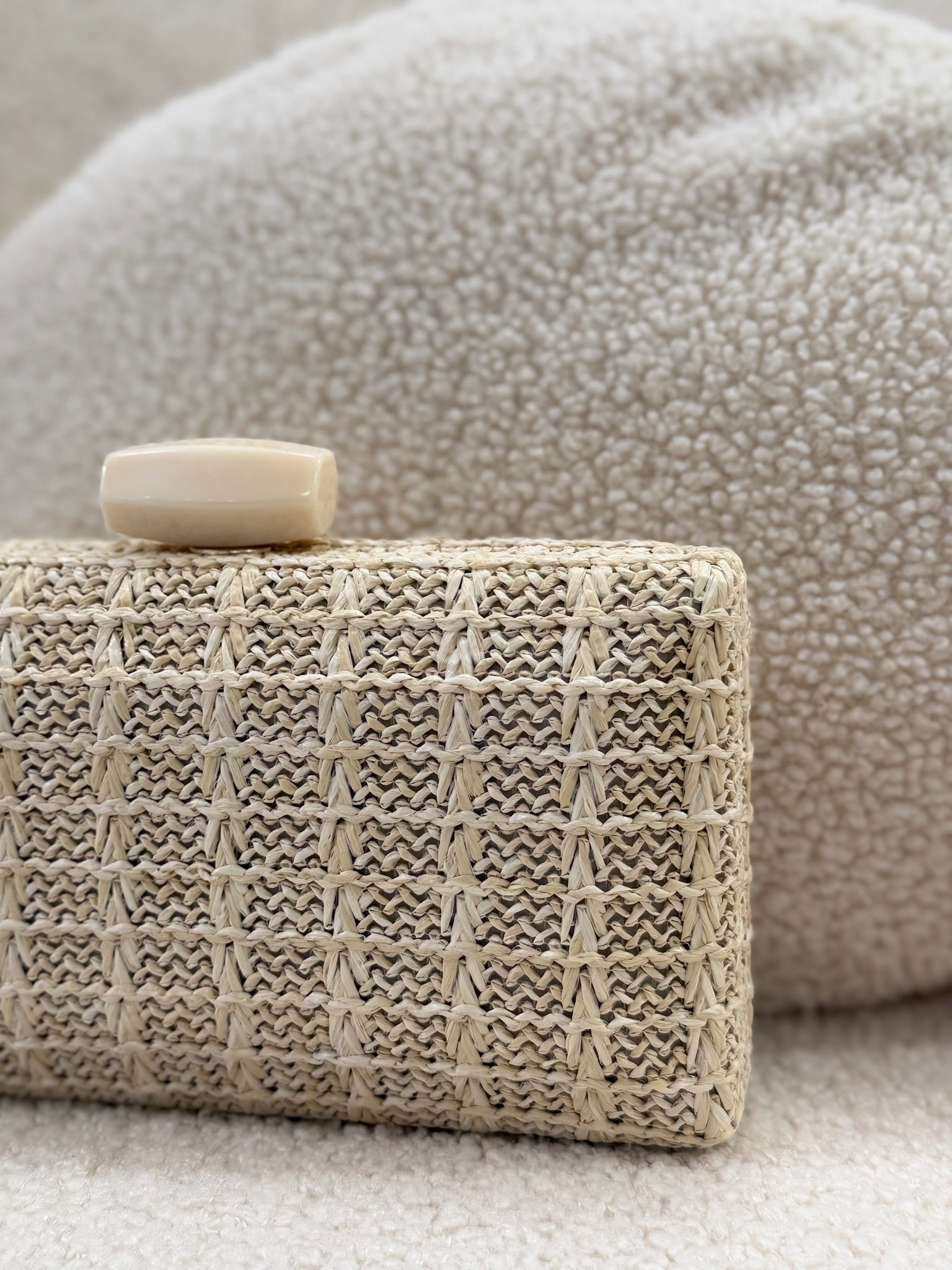 A mala Adriana é o acessório perfeito para looks elegantes e radiantes de convidada. O seu design em tecido natural entrançado confere um ar fresco e sofisticado, ideal para casamentos diurnos, comunhões ou eventos de primavera e verão.