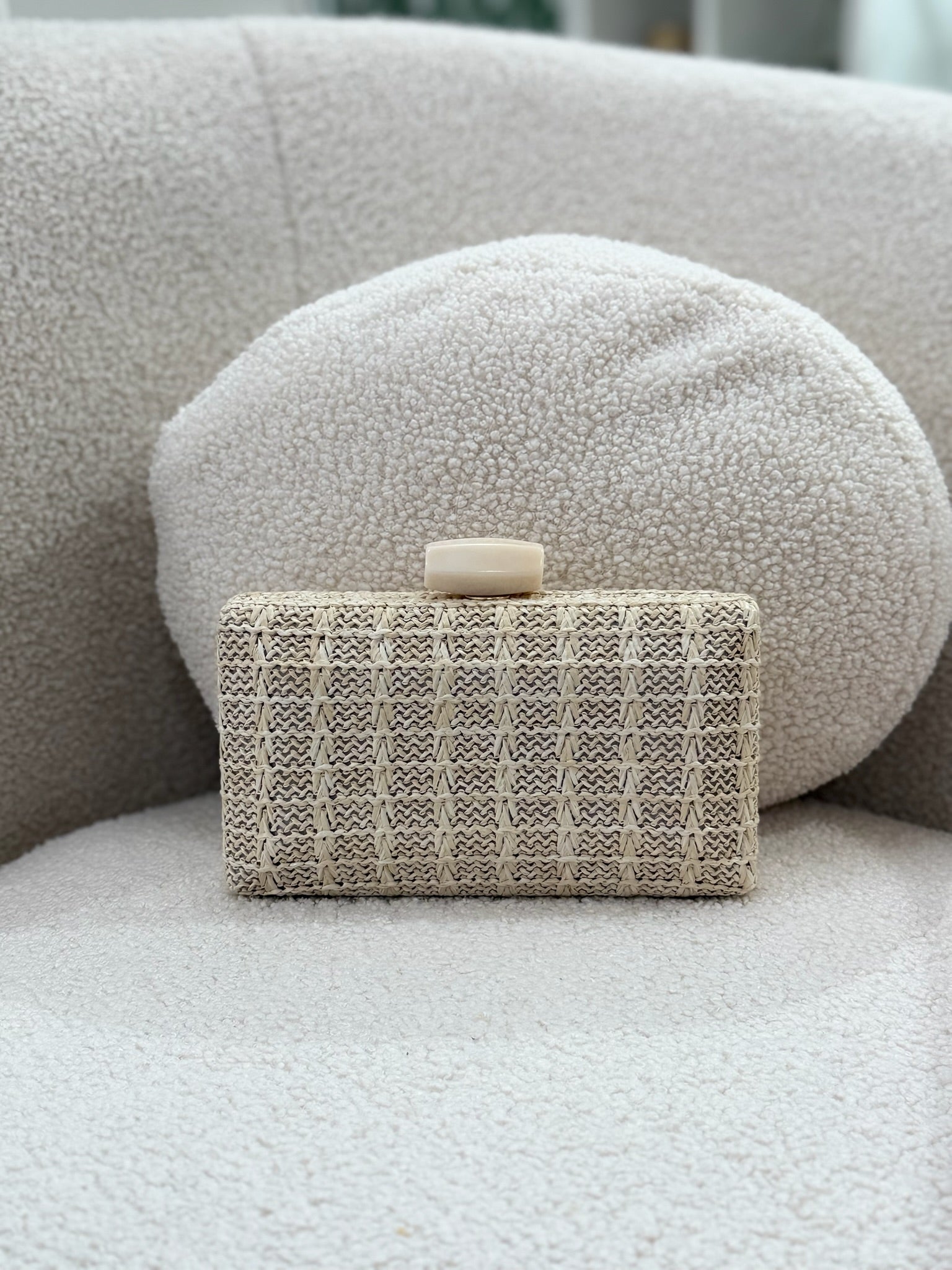 O seu fecho rígido em cor marfim confere-lhe um toque requintado e moderno, tornando-a numa mala versátil que combina facilmente com vestidos estampados ou tons neutros.